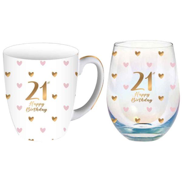 Only 2 left!2 Pack 21st Sweet Heart 400ml Mug & Stemless Glass - 520ml