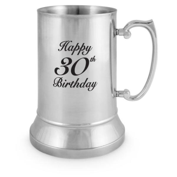 Only 3 left!Elegant Stainless Steel Happy 30th Birthday Beer Stein - 530ml