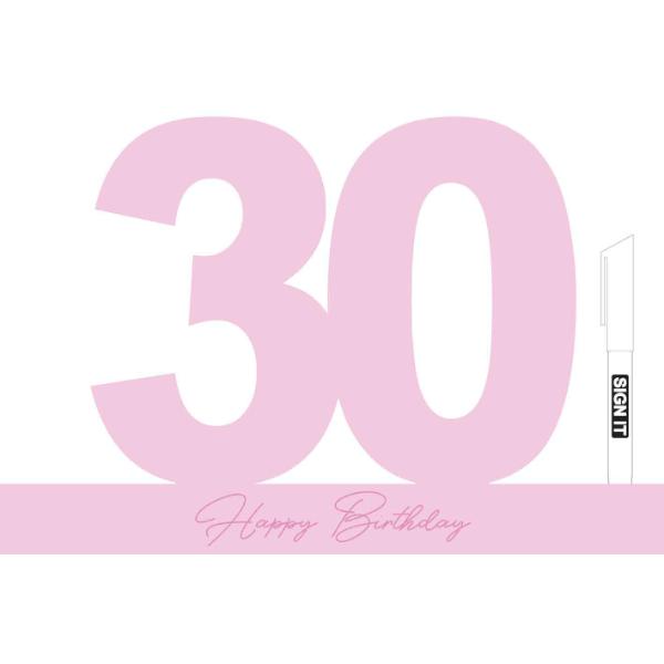Only 1 left!Fairy Floss Pink 30th Signature Block With Pen