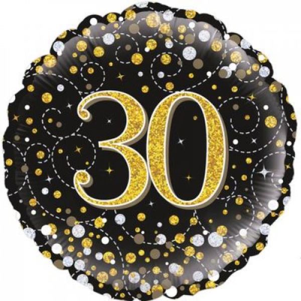 Sparkling Fizz Black & Gold 30th Birthday Foil Balloon - 46cm