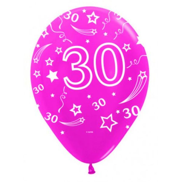 30th Metallic Fuchsia Sempertex Latex Balloon - 30cm