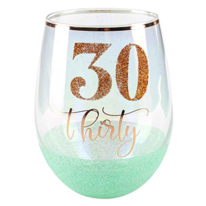 Only 5 left!30 Thirty Glittery Colour Stemless Champagne Glass - 180ml