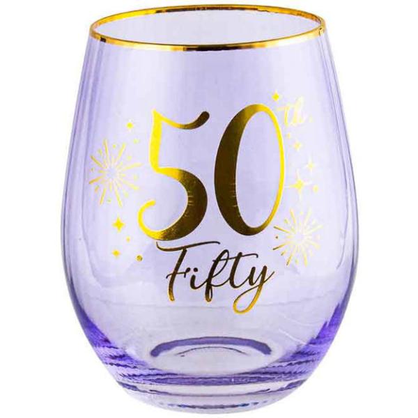 Only 5 left!50th Fluted Stemless Glass - 600ml
