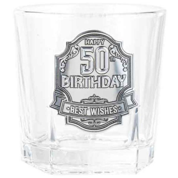 Only 3 left!50th Birthday Badge Whisky Glass - 260ml