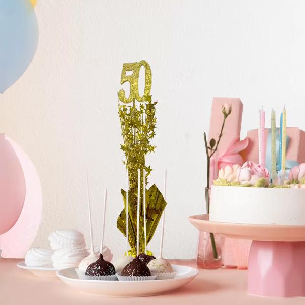 8 in stockGold Sparkling Celebration 50 Cake Topper Pick - 8cm x 15cm
