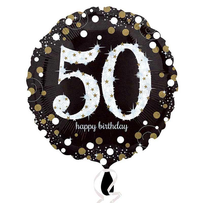 Sparkling Fizz Black & Gold 50th Birthday Foil Balloon - 46cm
