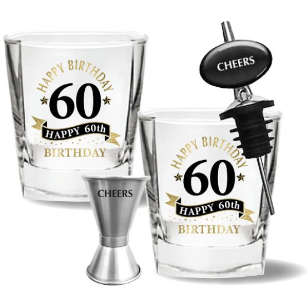 Only 3 left!4 Pack Happy 60th Birthday Spirit Glass Gift Set - 260ml