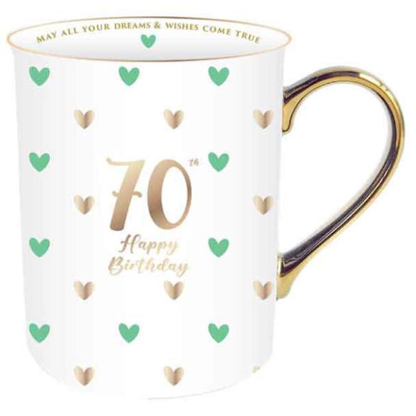 Only 2 left!70th Sweet Heart Mug With Gold Handle - 360ml