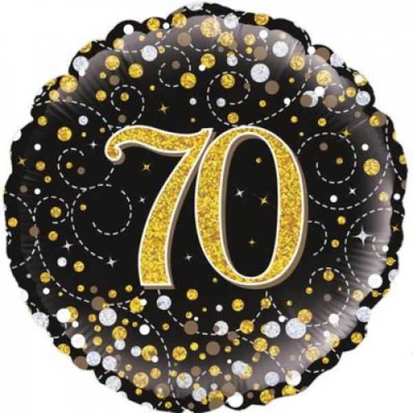 Sparkling Fizz Black & Gold 70th Birthday Foil Balloon - 46cm