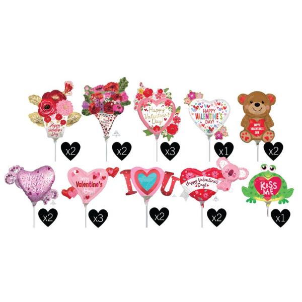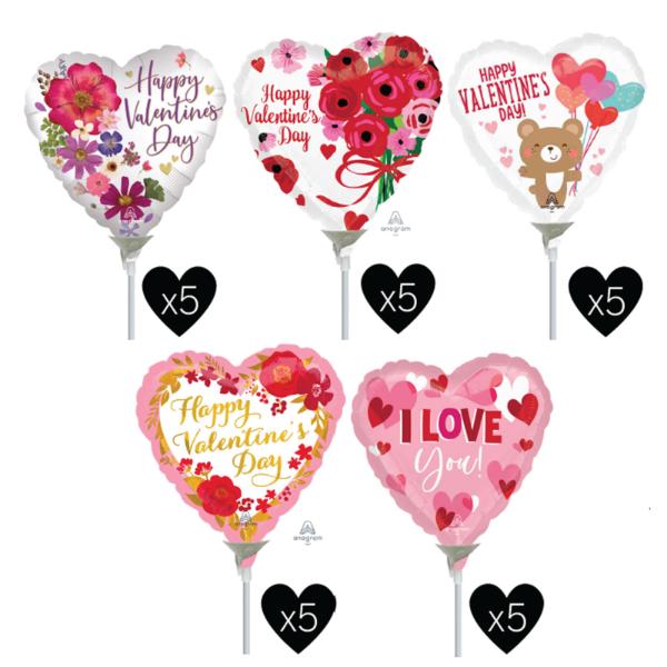 Assorted Mini Shapes Happy Valentines Day Balloon Stick