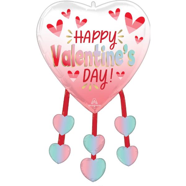 Only 5 left!Happy Valentines Day Diffused Ombre Heart Danglers Foil Balloon - 86cm