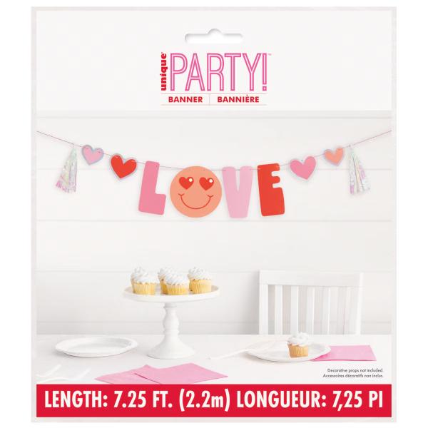 6 in stockRed / Pink & Iridescent Foil Love Heart Banner With Foil Tassels - 220cm