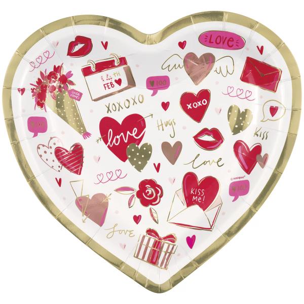 6 in stock8 Pack Red & Pink Foil Stamped Love Heart Paper Plates - 18.4cm