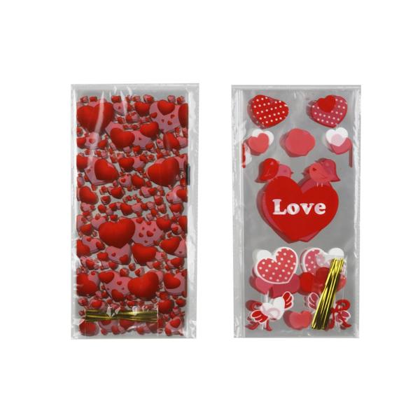 10 Pack Heart Cello Bag - 24cm x 12.7cm