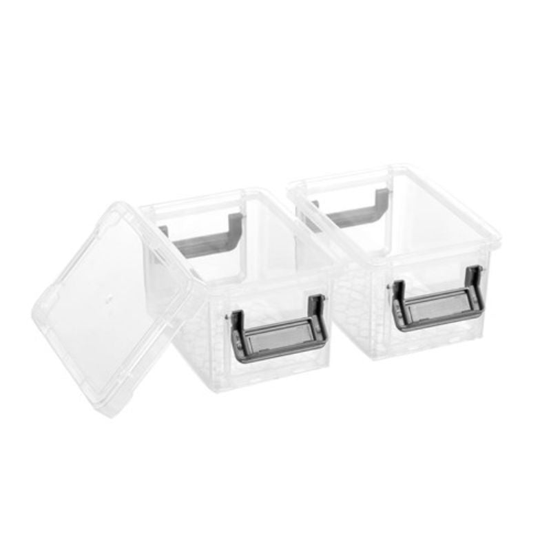 Shop 2 pack Clear Mini Stacker Box - 330ml at The Base Warehouse. The boxes are stackable, made from durable material, secure clip lock lid, and BPA Free.