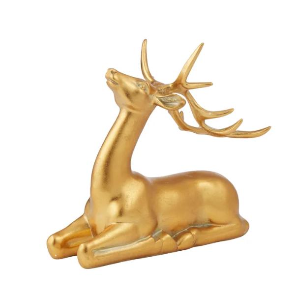 Gold Polyresin Laying Deer - 22cm x 20cm x 12cm
