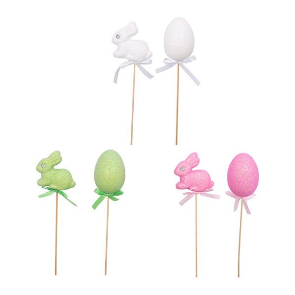 Only 2 left!2 Pack Assorted Egg & Bunny Mdf Pick - 5cm x 1cm x 25cm