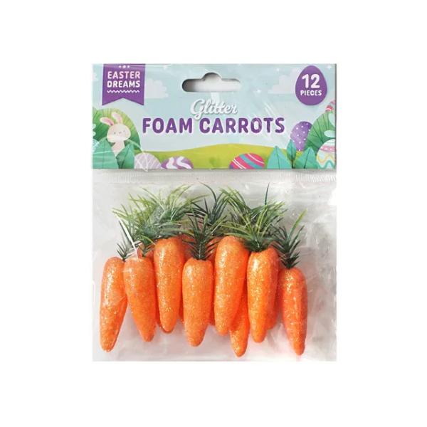 Only 2 left!12 Pack Glitter Foam Carrots - 6.5cm
