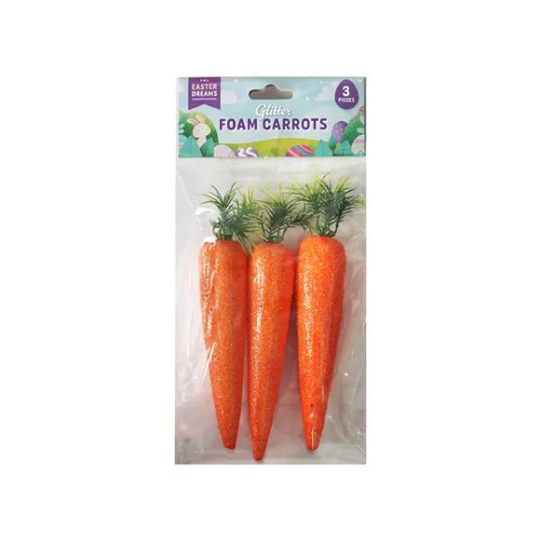 Only 4 left!3 Pack Easter Glitter Foam Carrots - 17.5cm