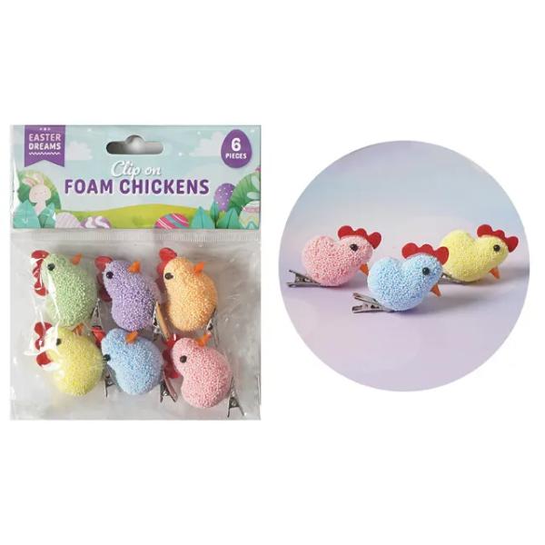 Only 4 left!6 Pack Easter Foam Chickens With Clips - 4.6cm x 3cm