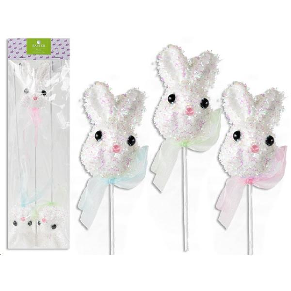 Only 1 left!3 Pack Easter Foam Bunny Picks With Organza Ribbon - 28cm