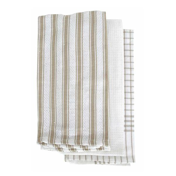 Only 2 left!3 Pack Taupe Gardenia Tea Towels - 50cm x 70cm