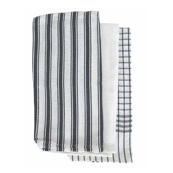 Only 2 left!3 Pack Charcoal Gardenia Tea Towels - 50cm x 70cm