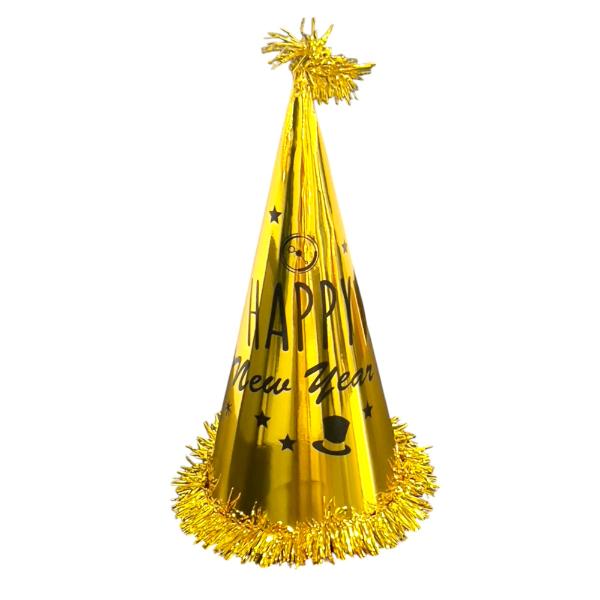 Gold Or Silver Tall NYE Party Hat With Tinsel - 34cm