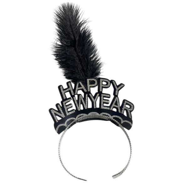 Round Gold Or Silver Happy New Year Hat With Tinsel