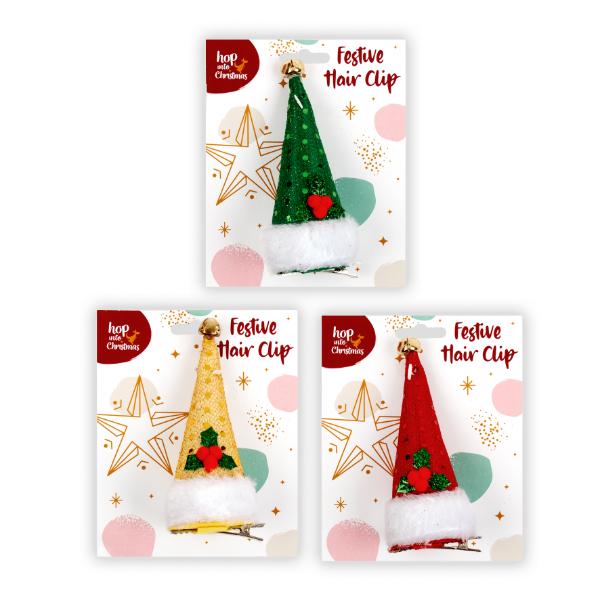 7 in stockChristmas Santa Hat Novelty Hair Clip - 12cm