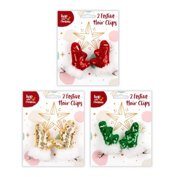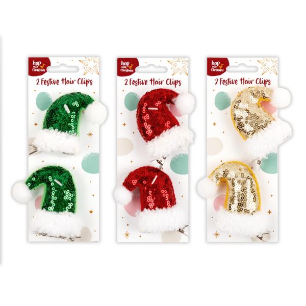 Only 5 left!2 Pack Christmas Santa Hat Novelty Hair Clip - 6.5cm