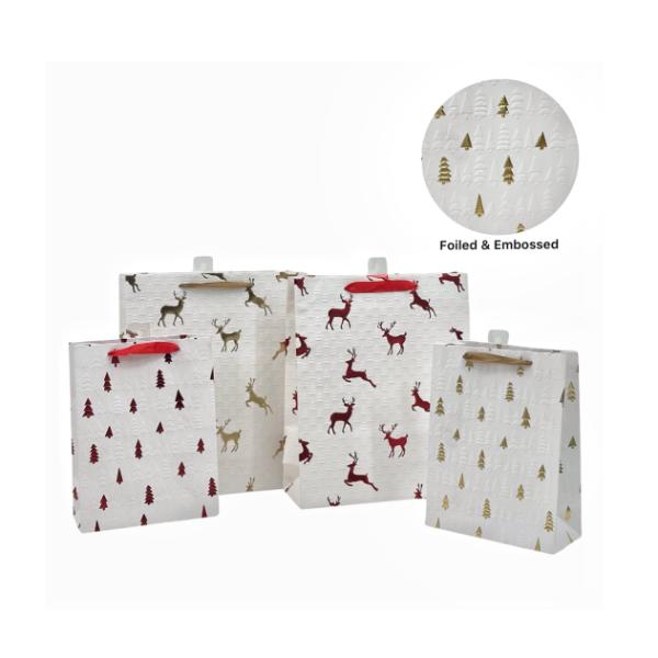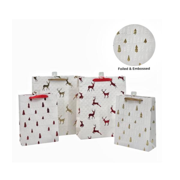 XMAS FOILED&EMBOSSED TREE/REINDEER G/BAG SML 14.2X11.3X6.5CM