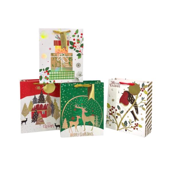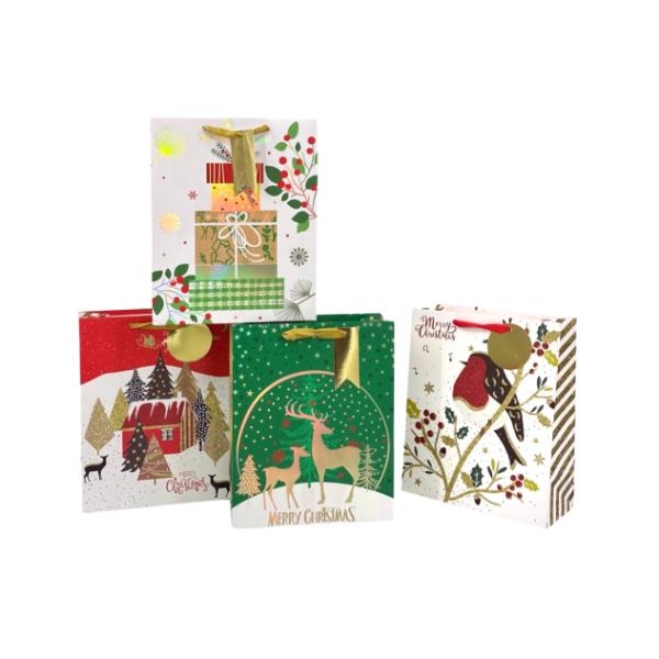 13 in stockFOILED TRADITIONAL XMAS BAG SML 14.2X11.3X6.5CM 4 ASST