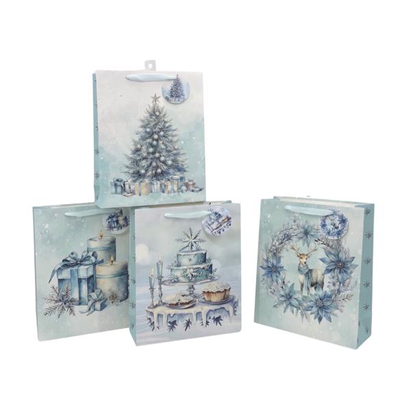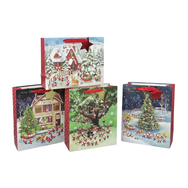 8 in stockXMAS WINTER WONDERLAND GIFT BAG SML 14.2X11.3X6.5CM 4 ASST