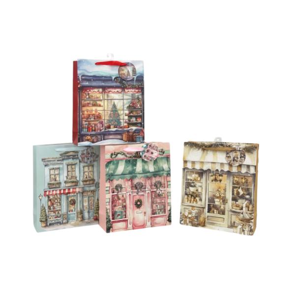 9 in stockXMAS SHOP WINDOWS GIFT BAG SML 14.2X11.3X6.5CM 4 ASST