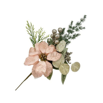 Christmas Pink Poinsettia Pine & Berry Spray - 40cm