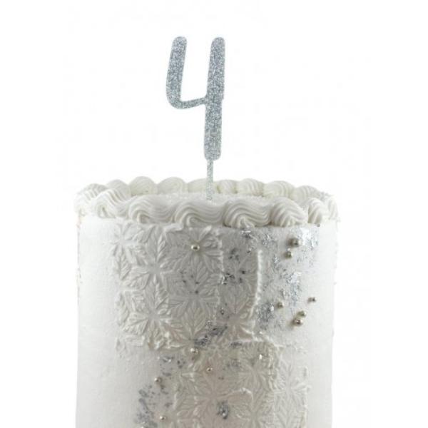 Only 2 left!Silver Glitter Acrylic Number 4 Cake Topper - 0.25cm