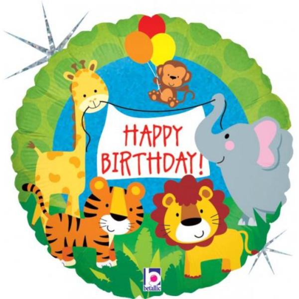 Only 5 left!Round Jungle Animals Holographic Birthday Foil Balloon - 45cm