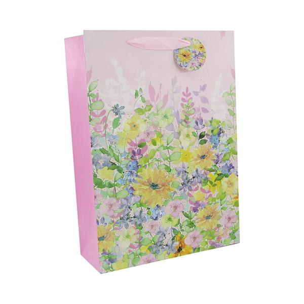 Only 1 left!Floral Pink Glitter Gift Bag - 30cm x 42cm x 12cm