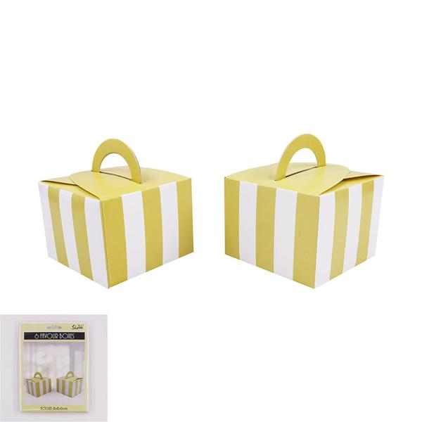 Only 2 left!6 Pack Yellow Striped Favour Box - 8cm x 8cm x 6cm