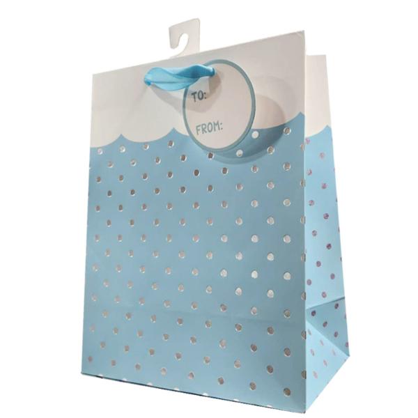 Gift Bag Dots Wavy Cuff Blue Med 23*18*10CM
