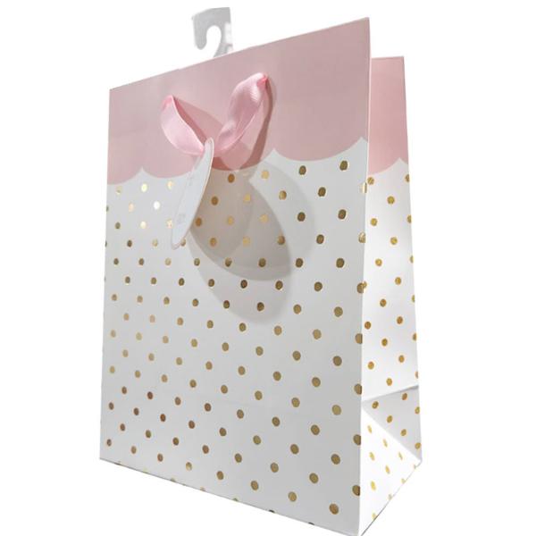 Gift Bag Dots Wavy Cuff Pink Ex 33*45*12.7CM