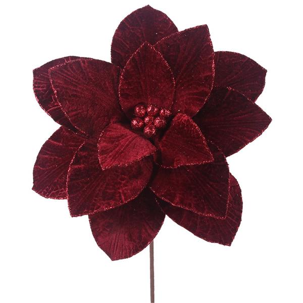 Red Velvet Poinsettia With Stem - 28cm x 50cm