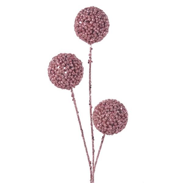 3 Pink Glitter Ball With Stem - 5cm x 48cm