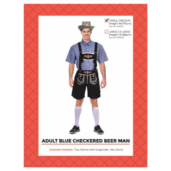 Only 1 left!Adult Blue Checkered Beer Man - Large - X Large