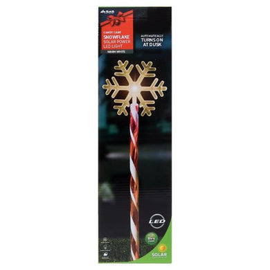 8 in stockWarm White 2 Functions Snowflake With Candy Striped Pole 5 Led Solar Light Stake - 11.8cm x 10.4cm x 45cm