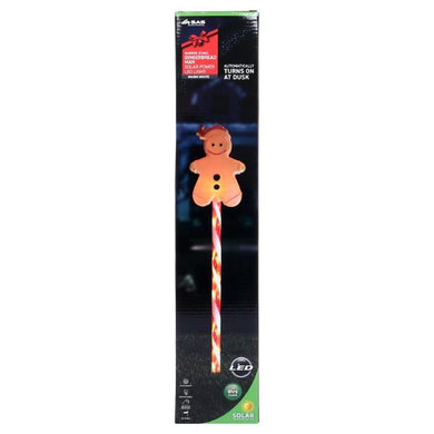 14 in stockWarm White 2 Functions Gingerbread Man With Candy Striped Pole 5 Led Solar Light Stake - 9cm x 14cm x 51cm