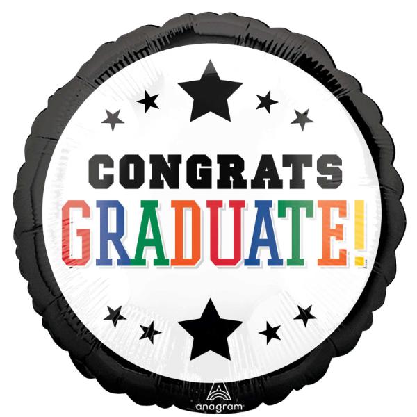 Only 1 left!Standard HX Brights & Black Border Congrats Graduate Foil Balloon - 45cm