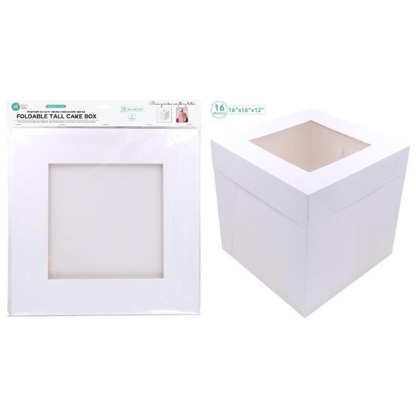 6 in stockWhite Tall Foldable Cardboard Cake Box With Window - 40cm x 40cm x 35cm
