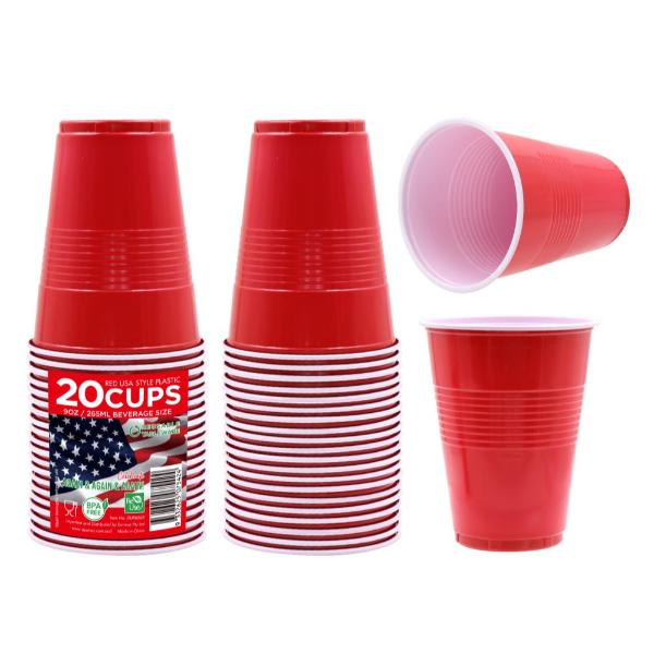 11 in stock20 Pack Red USA Style Reusable Cups - 265ml